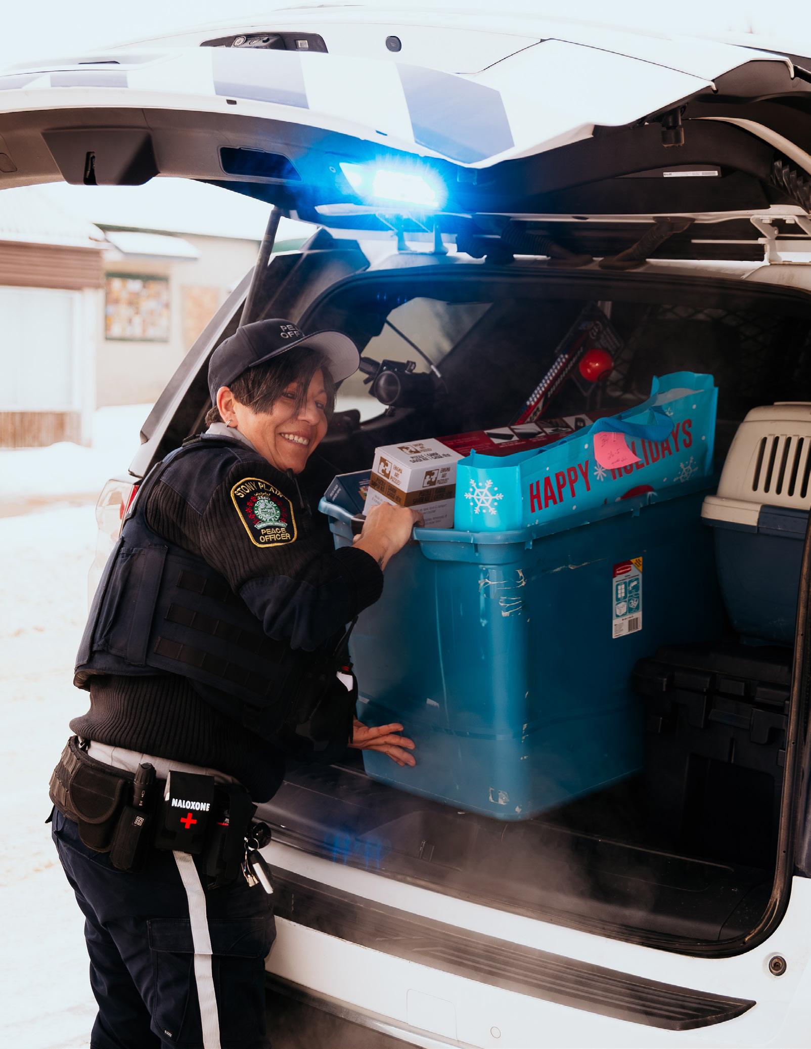 Each year in the fourth quarter, the Fire Department partners with the Kinsmen Club of Stony Plain to support its annual Hamper Program. Proceeds from the silent auction held at the department’s Christmas party were donated to the program, totalling $5,000. In addition, 24 department members volunteered in support of Kinsmen Hamper Day at Red Apple on December 13. This event generated an additional $6,400 in cash donations and seven truckloads of toys.