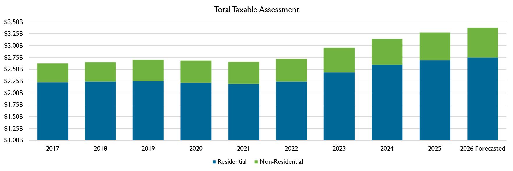 Permit values are anticipated to exceed 2025 levels. The Town successfully secured the Housing Accelerator Fund grant, and the resulting programs and system changes are projected to increase housing construction over the next two years, contributing to future property tax revenue.