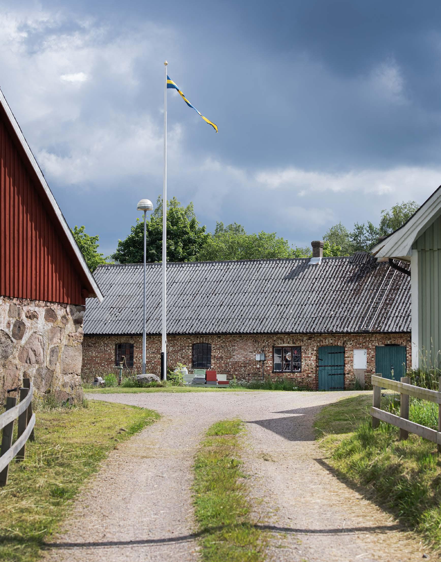 Runt den grusade och väl tilltagna gårdsplanen ligger också ladugården, maskinhallar och flera andra ekonomibyggnader, ja och så den fina trädgården förstås! Malins projekt.