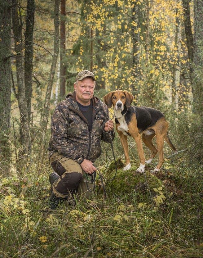 När Sven-Erik inte är ute och jobbar i skogen är han gärna ute och jagar. Han jagar både älg och småvilt. Småvilt jagar han gärna med sin stövare Messi.