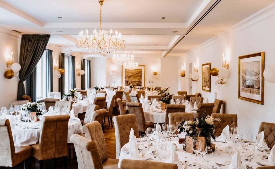 Located in the historic wing of the hotel, the main room of the Eschenbach Restaurant o ers a wonderful setting for your wedding. Large windows bathe the space in light, while the elegant parquet floor invites guest to dance.