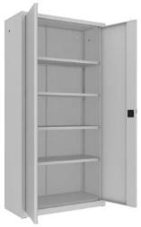 "The cabinets have a welded construction that ensures the rigidity of the body and doors. The cabinets are painted with powder paint RAL 7035 light grey). Low cabinet 2 shelf plate, 4 shelf plates in the tall cabinet. The step of adjusting the shelf plates 25 mm. The load capacity of one shelf plate is 60 kg when spread out."