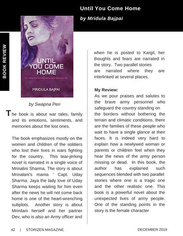 The book emphasizes mostly on the women and children of the soldiers who lost their lives in wars fighting for the country. This tear-jerking novel is narrated in a single voice of Mrinalini Sharma. The story is about Mrinalani's mama ' Capt. Uday Sharma. Jaya the lady love of Uday Sharma keeps waiting for him even afterthenewshewillnotcomeback home is one of the heart-wrenching subplots. Another story is about Mrinilani herself and her partner Dev,whoisalsoanArmyofficerand