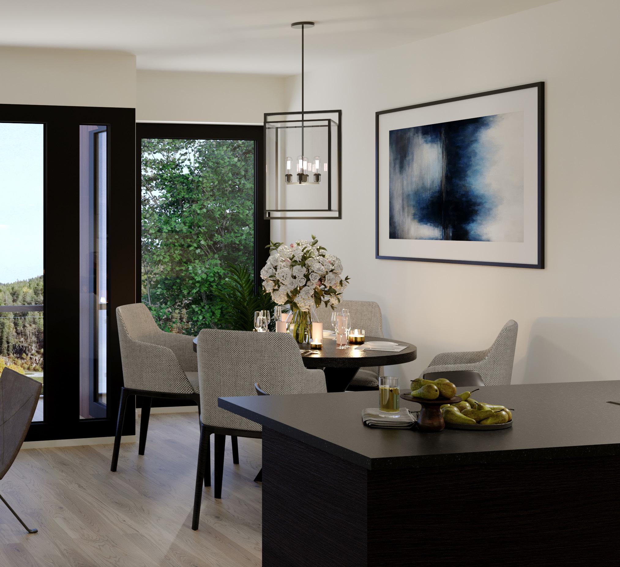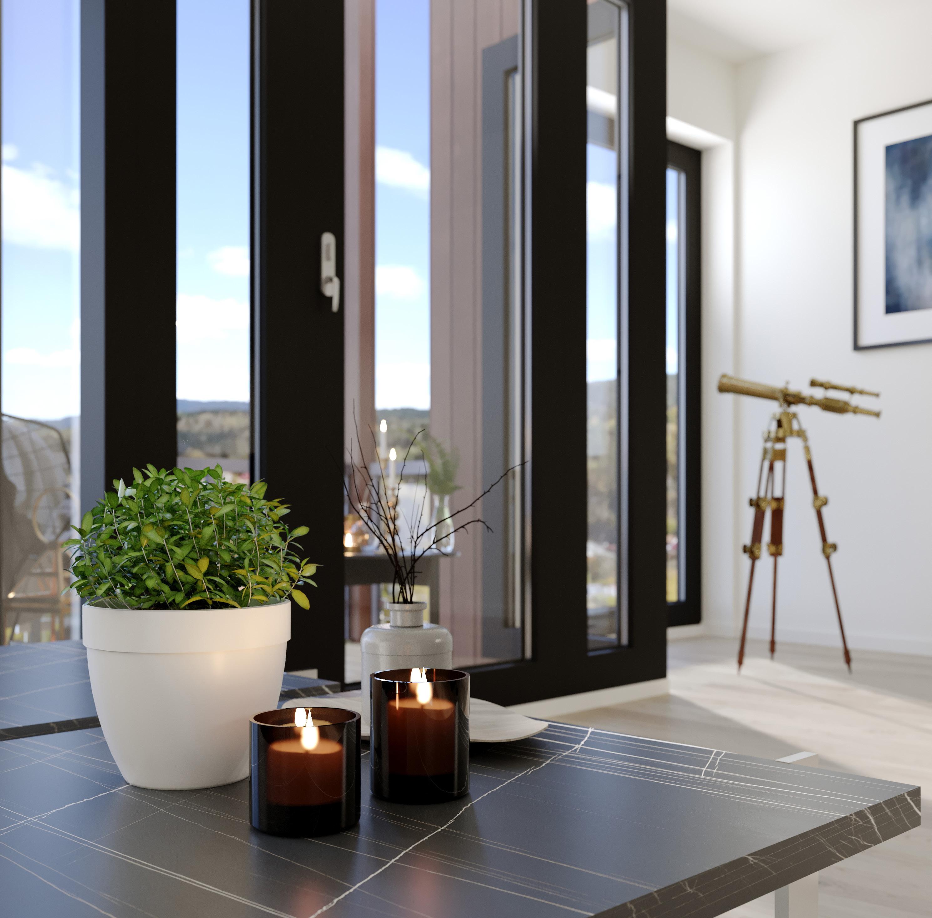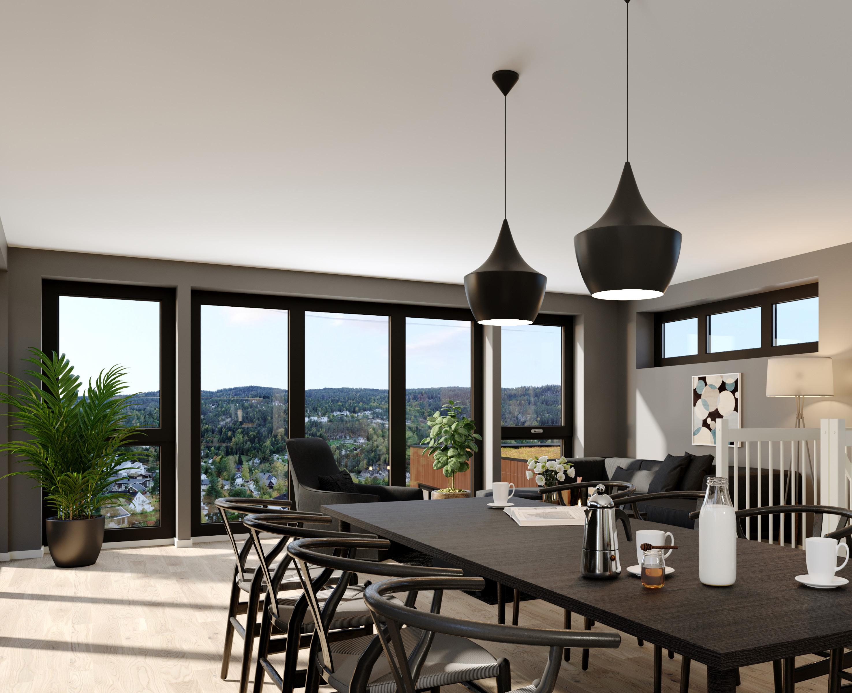 I penthouseleilighetene er det rom for at både store og små kan trives, enten det er sommer, høst vinter eller vår. Med de store vindusflatene får man naturen inn i stuen, samtidig som det er lunt og godt inne.