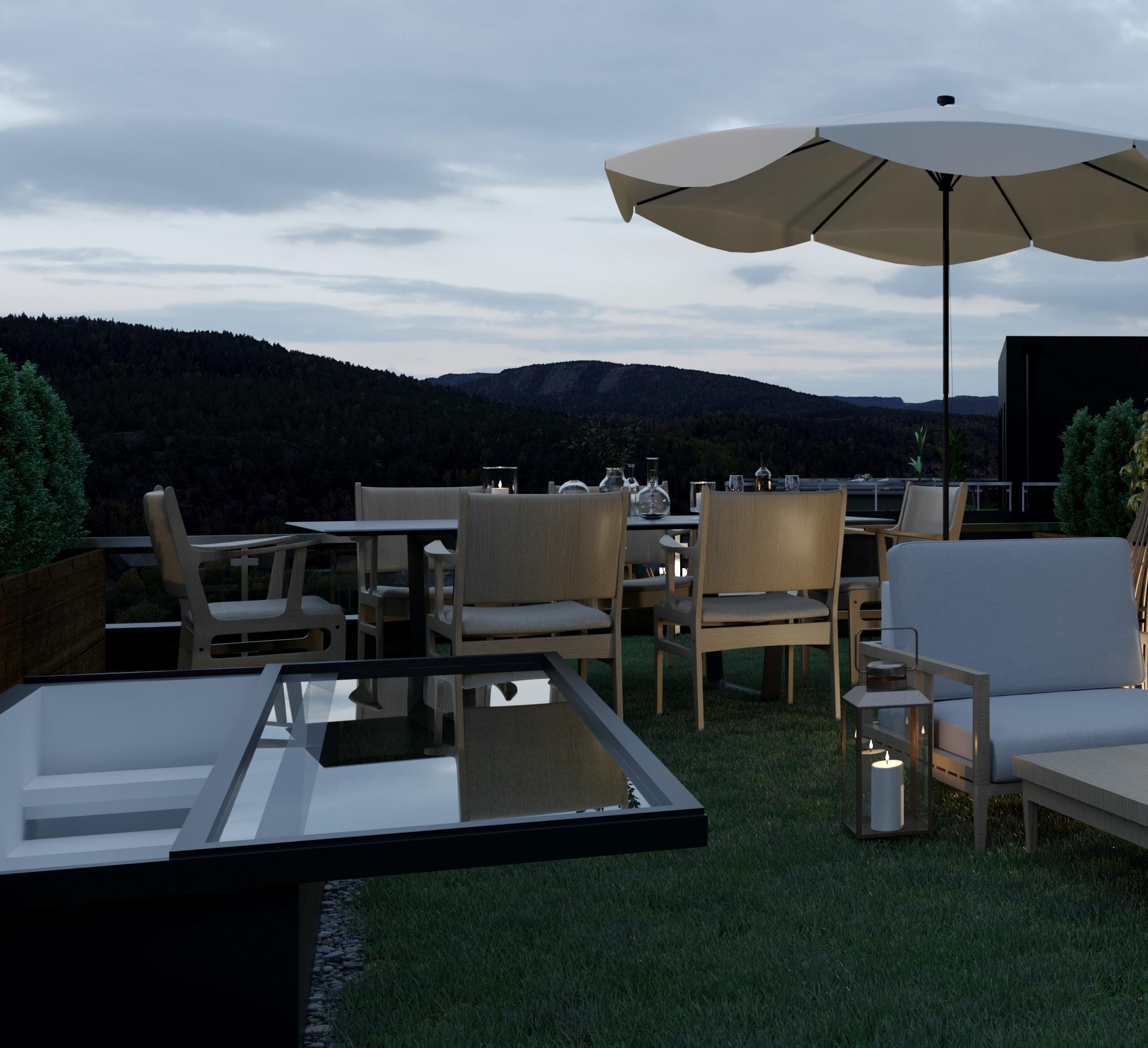 Penthouselelighetene har takhage eller altan. Arkitekturen legger stor vekt på gode og solrike uterom.