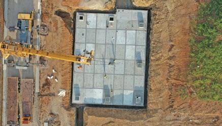 For large projects like this, cathedralstyle detention systems are preferable to a combination of smaller tanks, as the absence of internal walls saves concrete and space. The horizontal