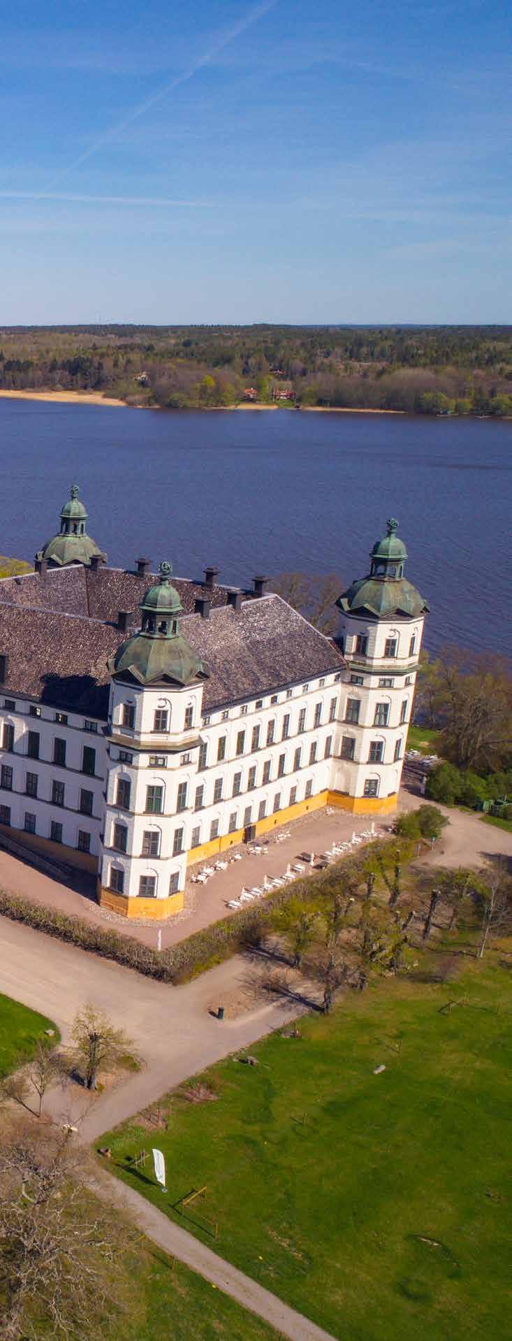 barockslott. Fältmarskalk Carl Gustaf Wrangel började år 1654 bygga slottet. Det står idag intakt med välbevarade interiörer och unika samlingar av vapen, verktyg, böcker, möbler, textilier, konst och konsthantverk från tiden 1550–1850.