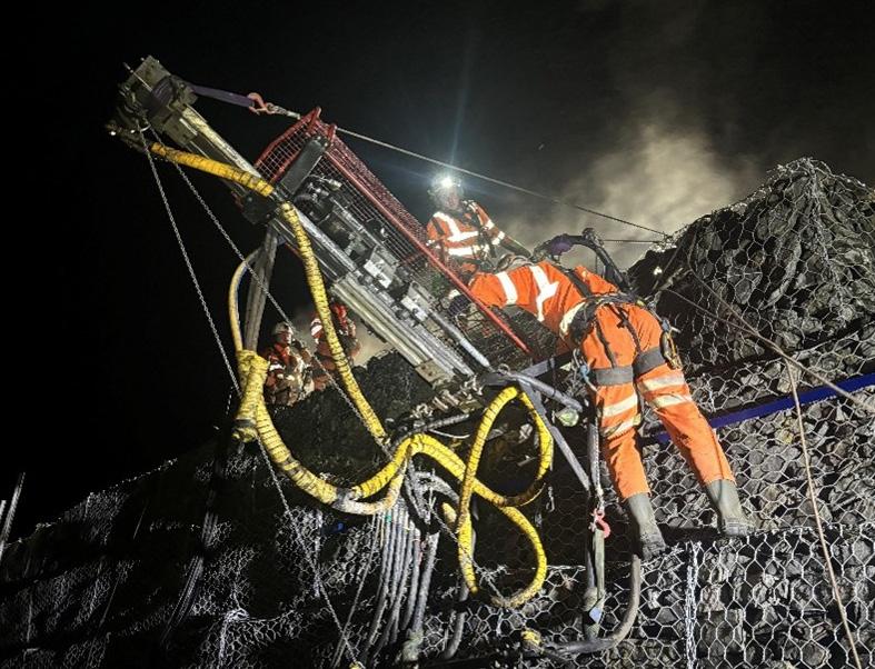 Boreholes were drilled to a depth of 20m along the alignment and an assessment of bedrock made from subsequent lab testing. Following the GI, a solution was designed for 345 soil nails of varying depth to be installed with a mesh and plate holding solution. Our team installed the nails during one of the worst weather periods of the regions recent history, with works completed under time and under budget.