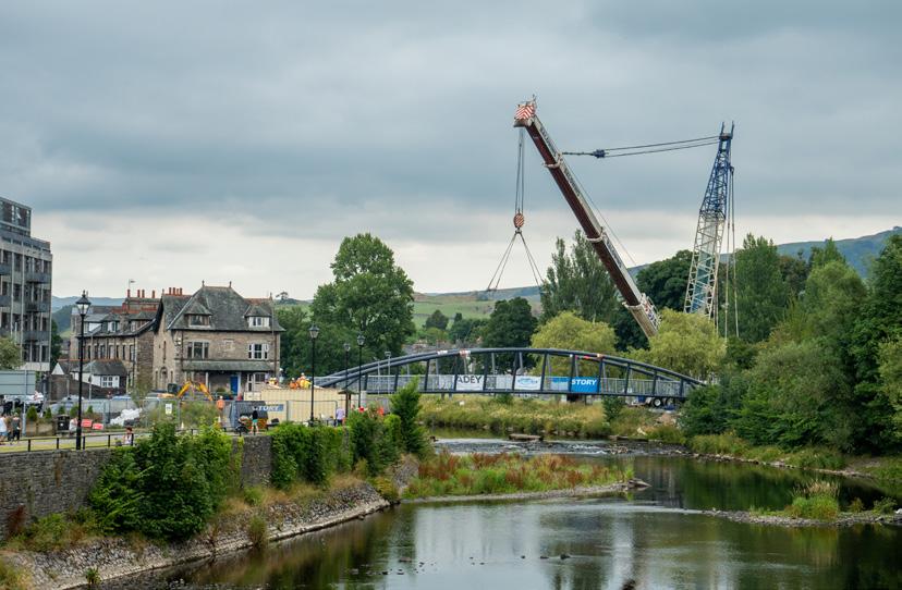 In a £1.8M scheme on behalf of Cumbria County Council, we delivered the replacement of Gooseholme Footbridge in Kendal following significant flood damage being caused to the existing structure. The works comprised Stage 1 design, Stage 2 demoliton of the existing structure and Stage 3 delivery of the replacement structure. Following seven years of closure, the new structure provides a broader 3.5m-wide deck and access ramps to enable shared access. The structure abutments and training walls also act as flood defences, tying in with the adjacent Environment Agency Flood Risk Management Scheme.