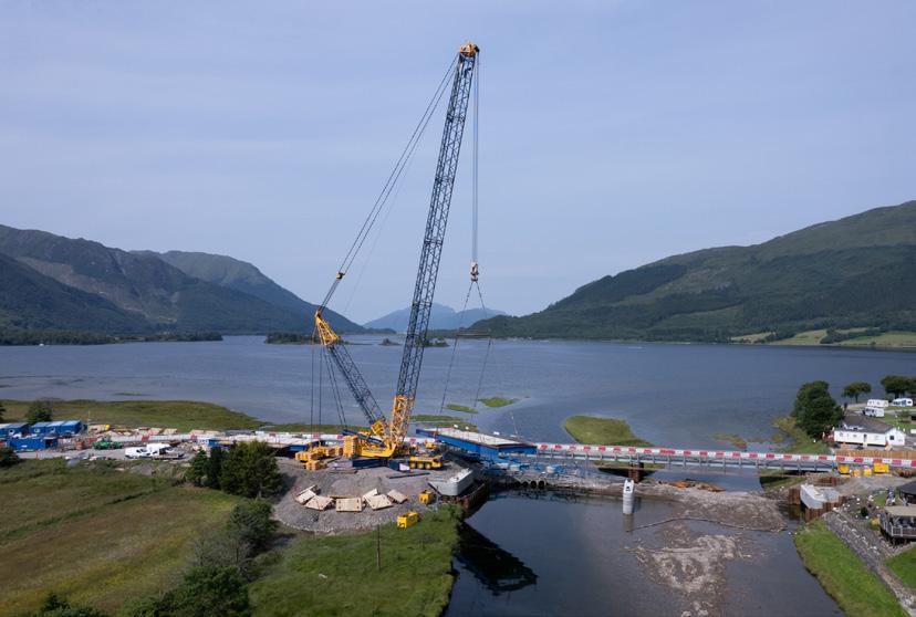 We delivered a £5.5m scheme to replace Invercoe Bridge Crossing over the River Coe on behalf of The Highland Council. To facilitate the demolition of the existing structure, a temporary road and pedestrian bridge was constructed, adjacent to the existing bridge, to divert traffic and pedestrians around the existing structure during demolition and the eventual new bridge construction works. The completed works saw the construction of new concrete bridge abutments and pier, creating a new two-span bridge. A new steel girder bridge was fabricated and installed, with the new reinforced concrete deck supporting a new double carriageway and footway.