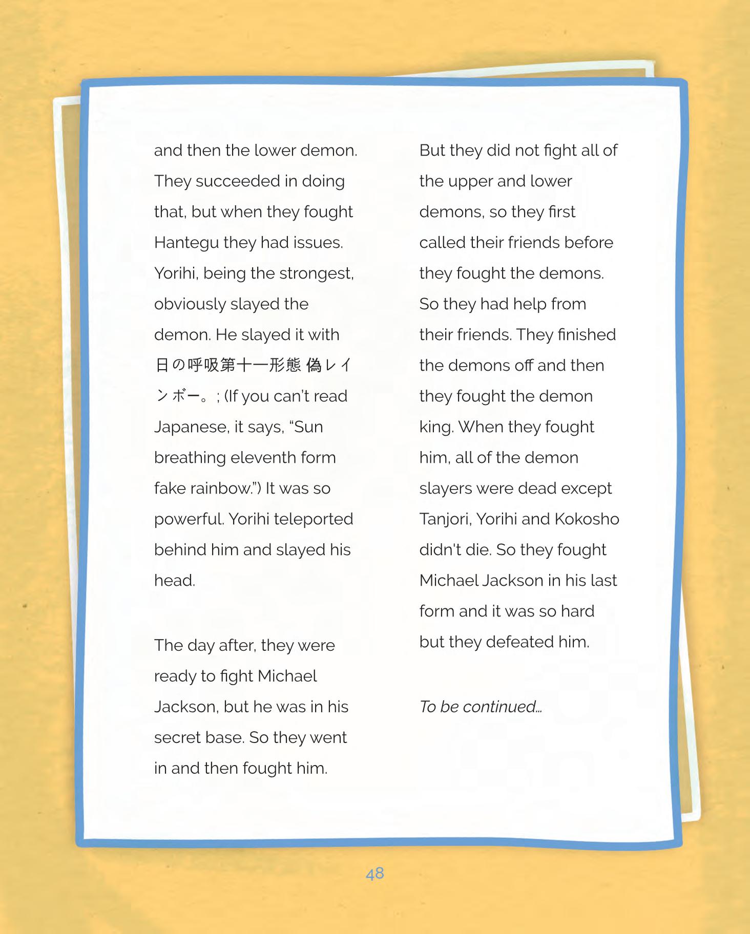 I am proud that I wrote a story and that everyone learned something.