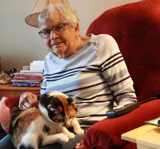 This is Ruth and her lovely calico cat named Tia Maria. Ruth adopted Tia Maria, who is 8 years old. She is a very popular cat in the community and makes Ruth laugh every day.