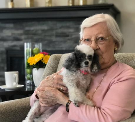 Annie is a 10-year-old Party Poodle. Jean said she absolutely would not live at Independence Village if they didn’t allow her “baby girl” to live at the community too. Annie is a therapy dog for the Assisted Living and Memory Care residents twice a week.