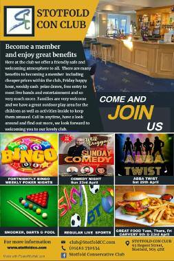 On 15th April we will be hosting our Race Night The event will take place at the Memorial Hall, Hallwor th Drive, doors open at 7pm for a 7 15pm star t Tickets cost £7 50 f rom the o ff ice Snacks and nibbles will be pro vided, please bring a bo ttle!
