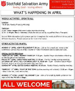 9 April Sunday 6.30am Churches Together Sunrise Ser vice at the Beacon in Sto tfold Cemeter y.