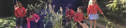 Welcome to our news! We are thoroughly enjoying having ever yone back! Last month, children continued to spend the predominant par t of their time outdoors. We have focussed on building friendships, collaborating, and sharing, and also on books, to coincide with World book day, back at the beginning of March, with The Hungr y Caterpillar, Handras Surprise, The Rainbow fish, Gingerbread man, Jack and The Beanstalk all firm favourites as they can be linked to collaborative activities and to activities outside The term culminated with Beatrix Potter stories, egg hunts and Peter Rabbit making his Easter appearance!