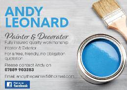 Jonny Garside 79 Regent Street, Stotfold 01462 732248 or 07951 473505