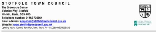 I am no w privileged to “work” on several Council committees as well as being one o f two council representatives on Bedfordshire Police Priority Settings committee, I am the council’s representative on Sto tfold Scou ts Execu tive Committee, and also the council’s representative on Bedfordshire Association o f To wn and Parish Councils In my “spare time” I joined the Sto tfold Good Neighbour Group in 2016 as a volunteer In 2017, the Group gained Charitable Status and I was elected as Treasurer and becoming a Trustee