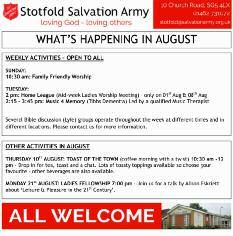 Meeting points for August: 3rd Arlesey train station 10th Etonbur y Woods (entrance to the woods near to the school ) 17th, 24th, 31st Corner o f Hospital Rd, Arlesey