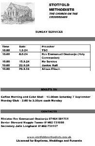 Please note: our adver tising deadline will be the 6th September - Call us for detals 01462