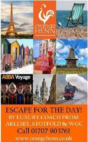 After seeing their adver t in the June edition of Stotfold News I booked on Orange Henn’s day trip to the Isle of Wight on the 13th July I have to say that I’d recommend this company to anyone interested in their wide range of trips I travelled with my brother and we were picked up outside Ruth’s Coffee Shop in the High Street exactly on time. We met up with the rest of the group, including Richard Henn the organiser, at the Dutch Nurser y in Hatfield and made our way to the Isle of Wight for a lovely day out Richard and the driver, Mar tin, were ver y friendly and helpful and I’d encourage your readers to take advantage of the Stotfold pick ups, which I don’t think any other coach companies offer and which do away with worr ying about public transpor t or finding somewhere to park