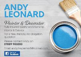 Jonny Garside 79 Regent Street, Stotfold 01462 732248 or 07951 473505