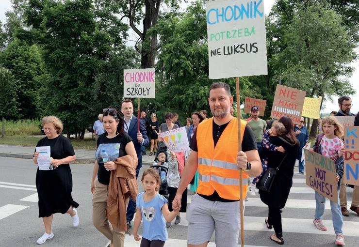 W ostatnim tygodniu czerwca włączyliśmy się w akcję protestacyjną na ulicy Tynieckiej, by wraz z mieszkańcami walczyć o poprawę bezpieczeństwa pieszych. Z uwagi na bliskość autostrady ulica Tyniecka cechuje się bardzo intensywnym ruchem drogowym, a kierowcy w tym rejonie często rozwijają znaczne prędkości. Mimo to na odcinku Dąbrowa – Nowa Kolna mieszkańcy od lat nie mogą doprosić się budowy tak bardzo potrzebnego chodnika. W proteście wzięli udział nie tylko dorośli, ale też dzieci, uczniowie pobliskiej szkoły, którzy z własnoręcznie wymalowanymi transparentami apelowali do władz miasta oraz urzędników, aby ich głos i potrzeba bezpieczeństwa przestały być pomijane.