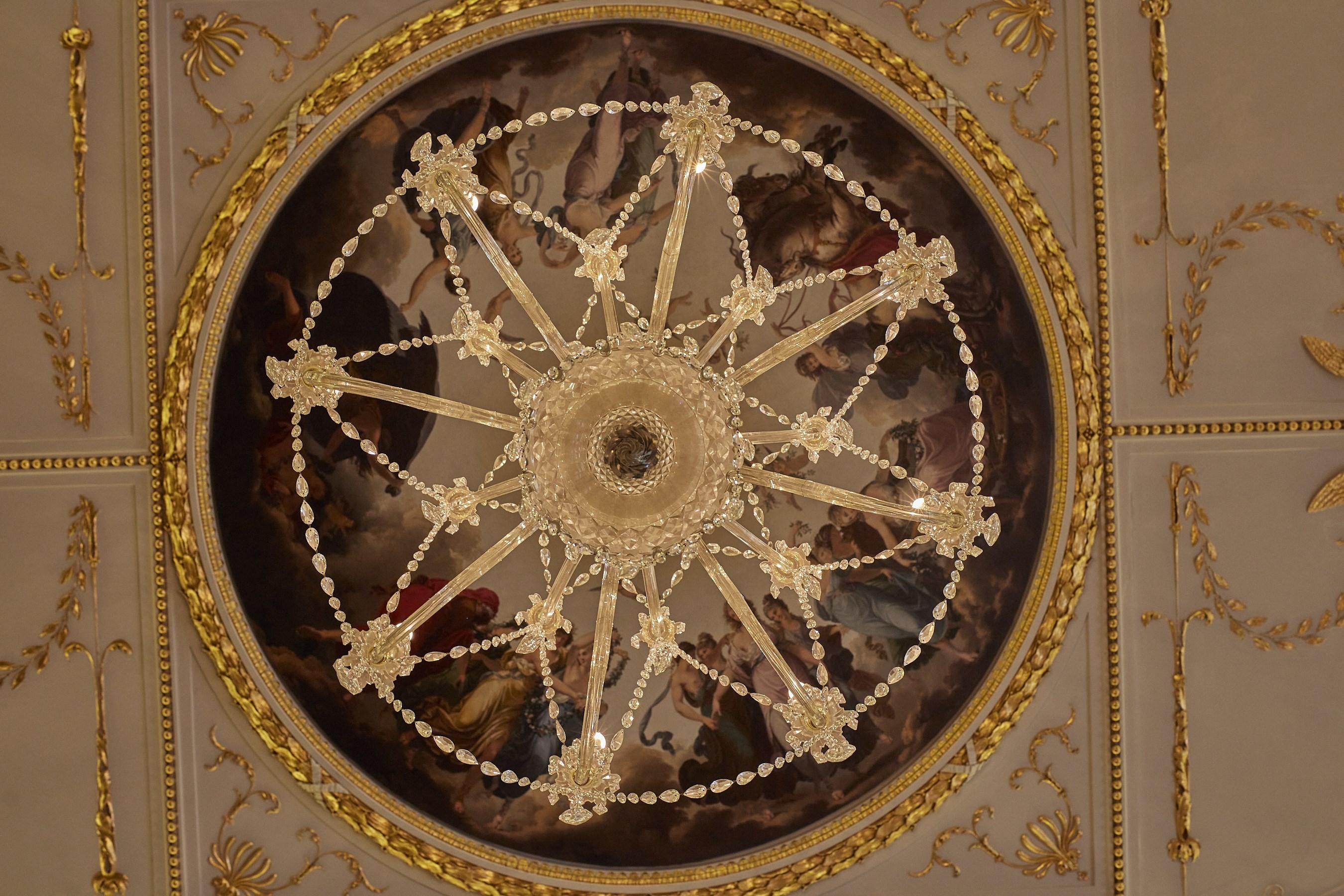 Stowe Mansion has been described as “the largest and most completely realised private neo-classical building in the world”. Its façade is over 275 metres in length, more than twice as wide as Buckingham Palace and certainly longer than Wentworth Woodhouse (185 metres). You can stay in a different room for each day of the year and still have rooms to spare. There is an element of theatre as you approach this "top seat" from the West at a right-angle to the house, to be embraced by a cour d' honneur of elegant colonnades on either side of Vanbrugh's portico. From the portico the visitor passes through the North Hall, admiring Kent's impressive grisaille ceiling painting of Mars handing a sword of victory to Viscount Cobham, before moving into the Marble Saloon with its white Massa Carrara floor and sixteen scagliola columns imitating Sicilian jasper and carrying a classical frieze of nearly three hundred figures moving in a triumphal procession above the cornice. The denouement comes as you emerge on to the noble South Front Portico, a loggia with six imposing Corinthian columns, thirty-one steps above the ground. There you are invited to gaze over the sloping lawns, flanked by vast and noble trees, skim over the placid waters of the Octagon Lake, Vanbrugh’s Lake Pavilions standing as sentinels on either side, proceed uninterrupted across the ha-ha to where the ground rises to meet Lord Camelford's triumphal Corinthian Arch. The view is one of the wonders of Stowe, once seen - never forgotten.