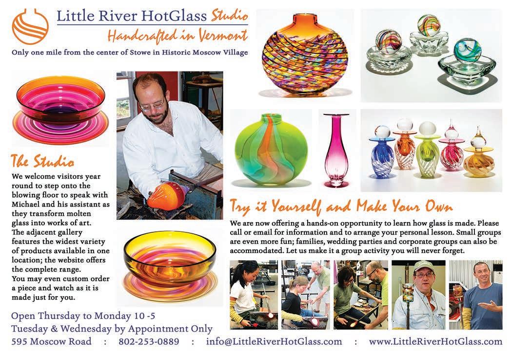 Walk into the studio and experience the art of glassblowing up close. Adjacent gallery features work of resident artist Michael Trimpol. Thursday to Monday 10-5. (802) 253-0889. littleriverhotglass.com.
