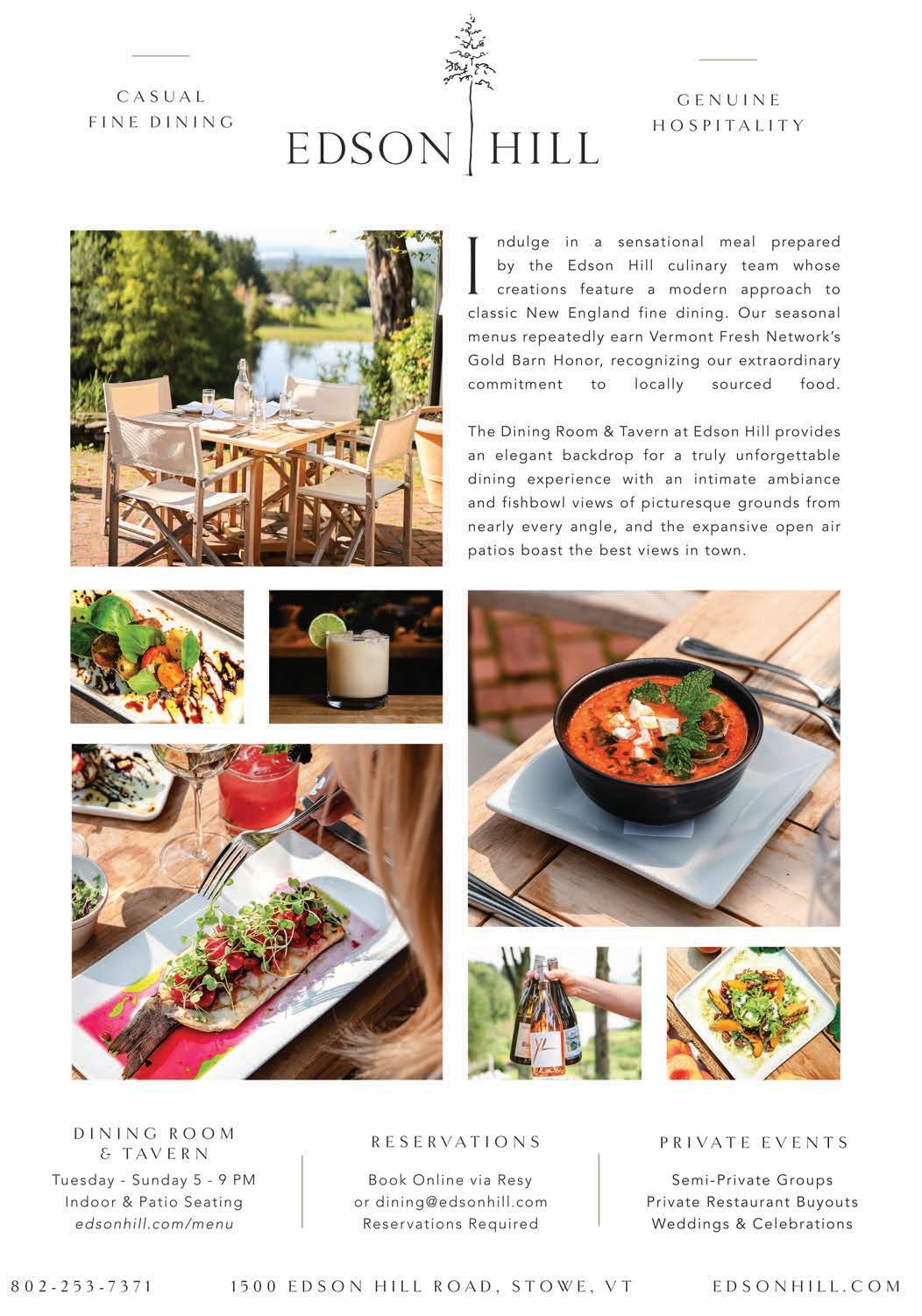Edson Hill offers you an exclusive, quintessential Vermont country estate with picturesque views, 22 luxurious guestrooms, and a talented culinary team to help create the wedding of your dreams. edsonhill.com, (802) 253-7371.