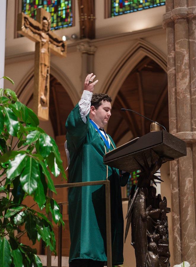 Saint Patrick High School is sensitive to the family’s desire of the young man being formally recognized as a graduate, acknowledged for four years of effort and directed to the future with our community’s best wishes and prayers. Please have no misunderstanding, though, that participation in the Baccalaureate Mass and Graduation Exercises at Holy Name Cathedral is a privilege that is earned, not a right. The student is in control of his graduation; he must meet the graduation requirements.