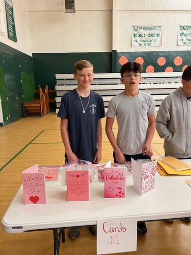 Throughouttrimester#2,eachofthesixelectiveclasses,grades6th8th,createditemstosellforourannualValentine’sDayMarket.Each class makes a gift idea reflective of the learnings in their specific class. The graphic design elective made posters, cards and bookmarks, floral design created flower arrangements, art elective designed original art images along with painted key chains and baking produced muffins and cookies. The gym was set up with beautiful gifts and the students ran their market for the student body. younger students had great fun shopping with their older school buddies! Business success, the market sold out before lunch. The classes raised over $1,100 purchasing duffle bags and birthday boxesfromTogetherWeRiseForChildreninfostercare.Thelaststep was decorating and stuffing the duffle bags including the birthday boxes, which were given to the Family Care Network. The students were gratified knowing their efforts provided joy to local children in need.