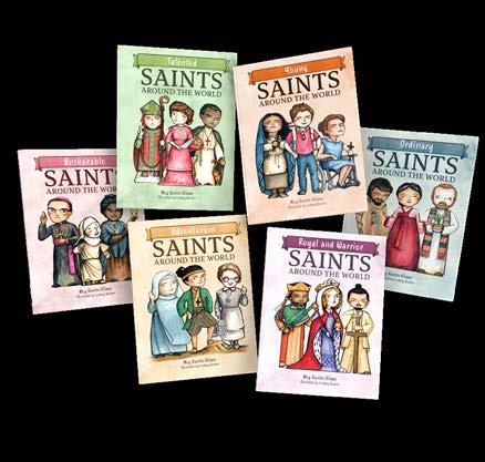Saints Around the World Early Reader Collection includes six books, each featuring the stories of 15 saints—young, adventurous, ordinary, royal and warrior, talented, and unshakable—with 32-page full color illustrations. For ages 4–8. Titles are also sold individually: Young Saints Around the World, Adventurous Saints Around the World, Ordinary Saints Around the World, Royal and Warrior Saints Around the World, Talented Saints Around the World, and Unshakable Saints Around the World