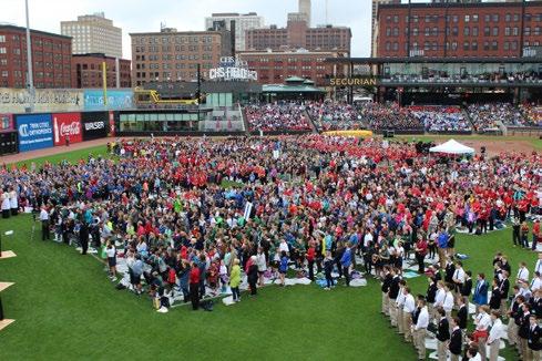 Opening Day Celebration culminates with a parade as players enter the field around the warning track.