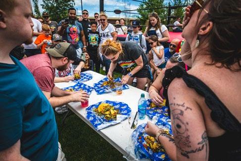 The World’s Largest Game of Twister takes place after a St. Paul Saints game on the grass of CHS Field.