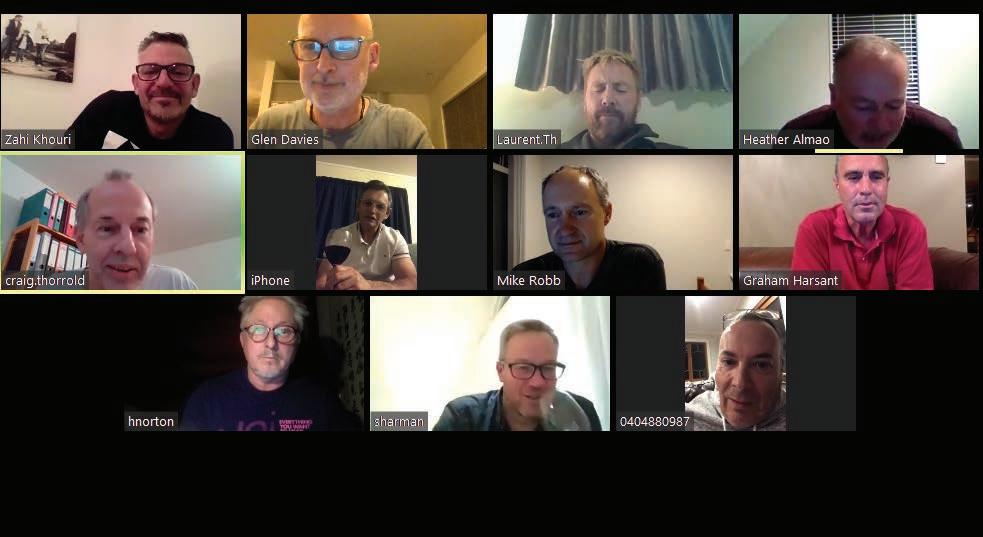 Collegians from the class of ’83 held a lockdown style reunion on Zoom recently. From L-R (top to bottom): Zahi Khouri, Glen Davies, Thomas Laurent, Stuart Almao, Craig Thorrold, Steve Morris, Mike Robb, Graham Harsant, Howard Norton, Stuart Sharman, Gerry van der Waal