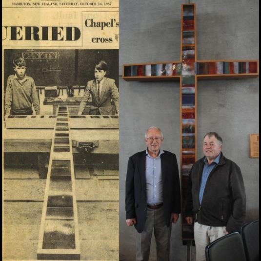 Anyone who entered the Chapel of Christ the King during the past 60 years would have seen the beautiful Rood Cross. It is made from Japanese oak by the hands of thenfifth-former, John Robertson (Clark 1965 -1968) and sixth-former, Bill Turner (Clark 1965 - 1968), who constructed the large cross supervised by woodwork master Mr Vic Matthews. It used to hang from the roof at the front of the Chapel and now is attached to the wall. It was designed as a result of the vision and creativity of Reverend Pat Parr, Chaplain of St Paul’s Collegiate School 1962 - 1978.