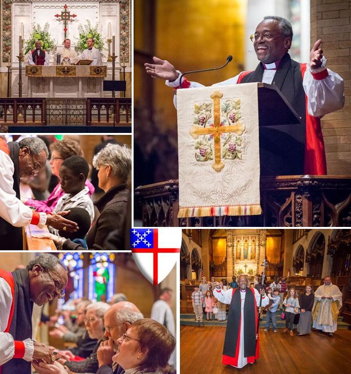 On November 6, 2016 the Most Reverend Michael Curry, Presiding Bishop of the Episcopal Church, participated in the 10:00 am Holy Eucharist service at St. Paul’s Church preaching, distributing Communion wafers, and dismissing the congregation with help from parish children. During his sermon he noted that Jesus was considered ‘crazy’ and ‘mad’ by his family, according to the Bible, and that the world needs crazy Christians. The successful morning with Dr. Curry would not have been possible without hours of preparation and involvement by the vocal and instrumental musicians, acolytes, members of the Altar Guild, Liz Cook and her team who prepared the treats for the reception, Bob Potter and his team for preparing the facilities for this special day, the outdoor assistants who helped with parking and crossing East Avenue, and Clergy Assistant Judy Loveland.