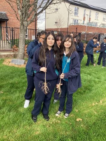 In response to Pope Francis' encyclical, our students responded with great enthusiasm to an invitation by the Parish Council to volunteer to help with the Holy Spirit Church rewilding / restoration project. In October, students weeded, cleaned and planted 3000 bulbs on the Church grounds. Students were taught about the importance of biodiversity; enhanced their understanding and appreciation of nature; and had the opportunity to meet and greet local parishioners. However, the outstanding contribution of three students in particular must be acknowledged. Those students represented our school (one of only two schools invited) to showcase our work on creating a greener future at a conference hosted by the Archdiocese of Dublin in conjunction with Trocaire in the Crown Plaza Hotel in November. Ali Baitson (First Year) was our Green Schools ambassador, and Sophie Donegan & Katie Leonard (Second Year) showcased our involvement in the Holy Spirit Church Rewilding Project and associated Artwork.