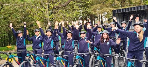 In May, 20 of our transition year students were fortunate to have the opportunity to take part in a mountain biking session in the Ticknock, Dublin Mountains in conjunction with Active South Dublin and ‘Her Moves’. The girls had a fantastic day maneuvering around the mountain terrain and for the majority of the girls it was their first-time mountain biking. This was a fantastic opportunity and hopefully more students will enjoy this experience in the coming years. A huge thank you to biking.ie for their support in organizing and providing this free trip for the girls.