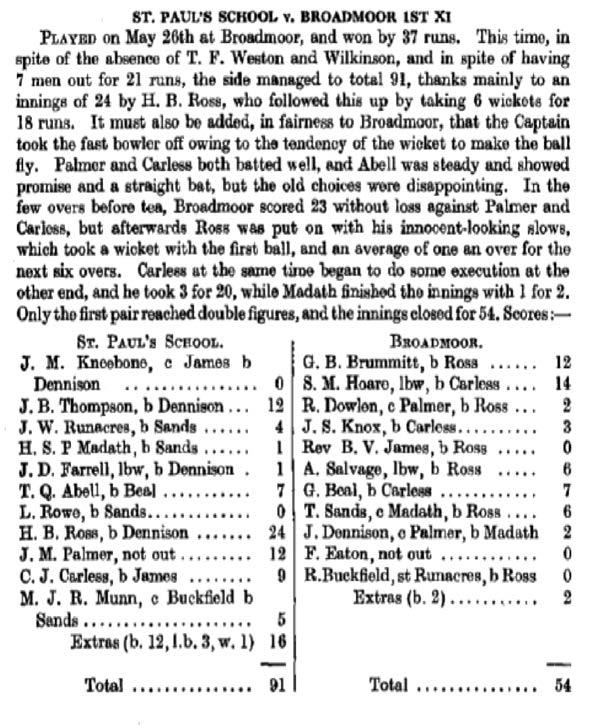 And the report and scorecard from a low scoring School 1st XI victory against Broadmoor Hospital shows how the evacuation to Crowthorne changed the fixture list. Atrium has found no evidence of a rugby match against the inmates.