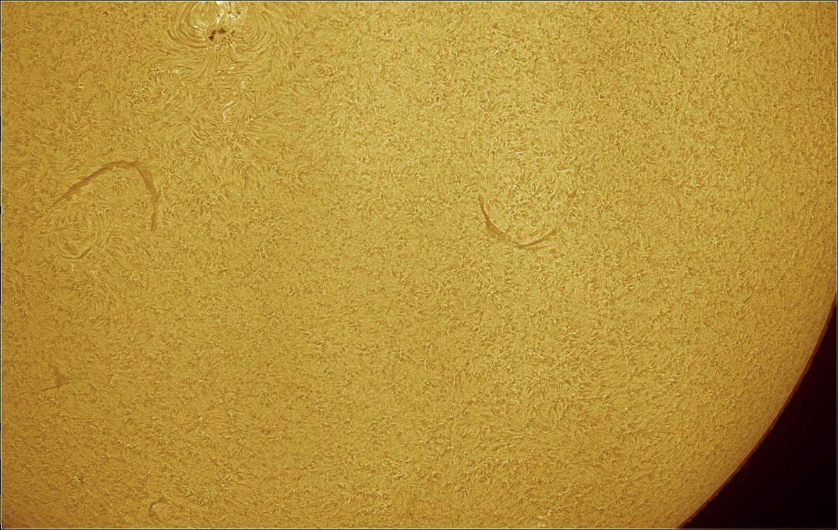 We observed these details on a telescope equipped with ahydrogen alphafilter,which allows for only a specific range of light wavelengths. This is critical as it limits the light collecting power of the instrument, making the image observed safe to the eye We also captured images in calcium-K or visible light to highlight different featuresof the sun We first captured thousands of frames of the Sun through a monochrome camera with the shortest possible exposure time For each image, the exposure time is kept to a minimum to prevent any blurring