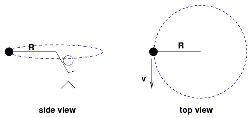 towards the centre of the circle of motion and that the direction of motion, v is always perpendicular to the tension R It is the combination of these two properties that causesthecircular motionof themass.