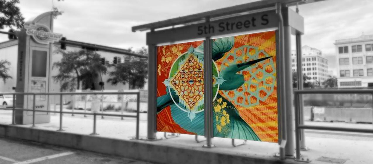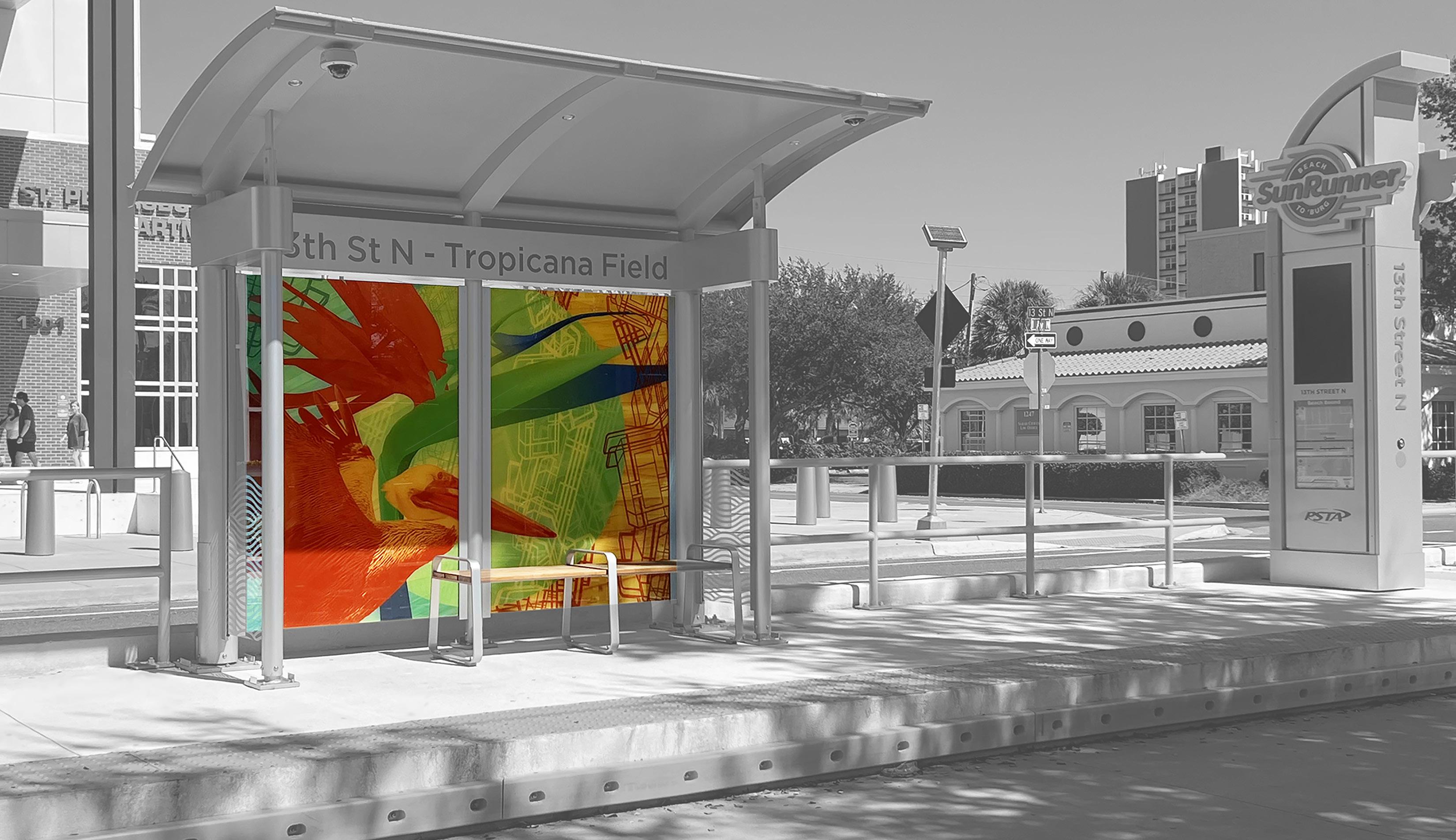 We hope you check out our feature about the new public art that can be seen from downtown to the beaches at the SunRunner stations, the colorful rapid transit bus line that launched in October. St. Pete artist Catherine Woods was commissioned to create the beautiful glass panels at 16 stations, each one reflecting its neighborhood and Florida wildlife. We think these works of art will become part of St. Pete’s cultural history, they are remarkable.