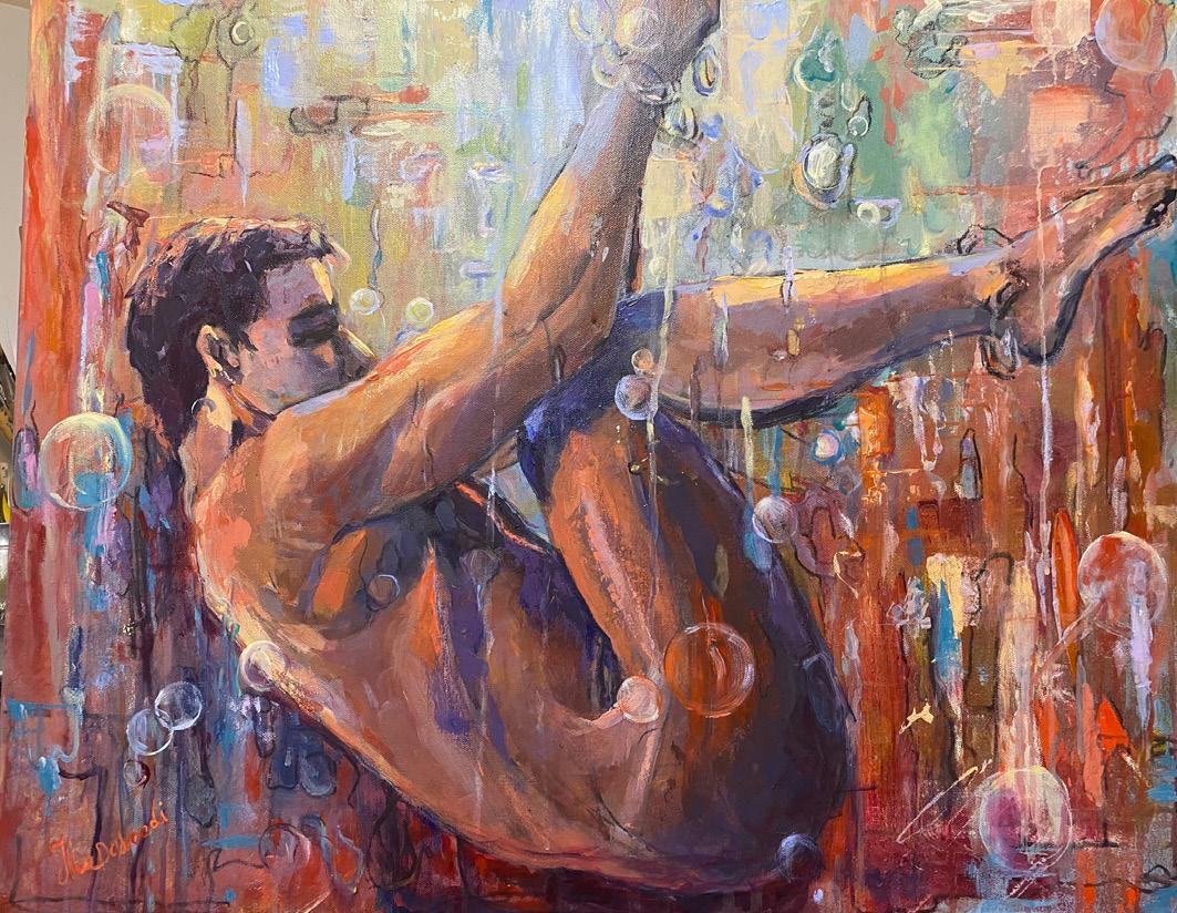 Barua opened her first gallery in downtown St. Pete in February 2020. Shortly after, the COVID pandemic forced her to close, a dream suddenly shattered. She remained positive, diving headfirst into her commission work which had been her bread and butter for the past decade. Her signature work — luxury fine art paintings that incorporate elements such as Swarovski crystals, 24 karat gold leaf, silver, crushed mica, gems, blown and crushed glasses, and glitter — is included in private and public collections and galleries across the country and around the world.