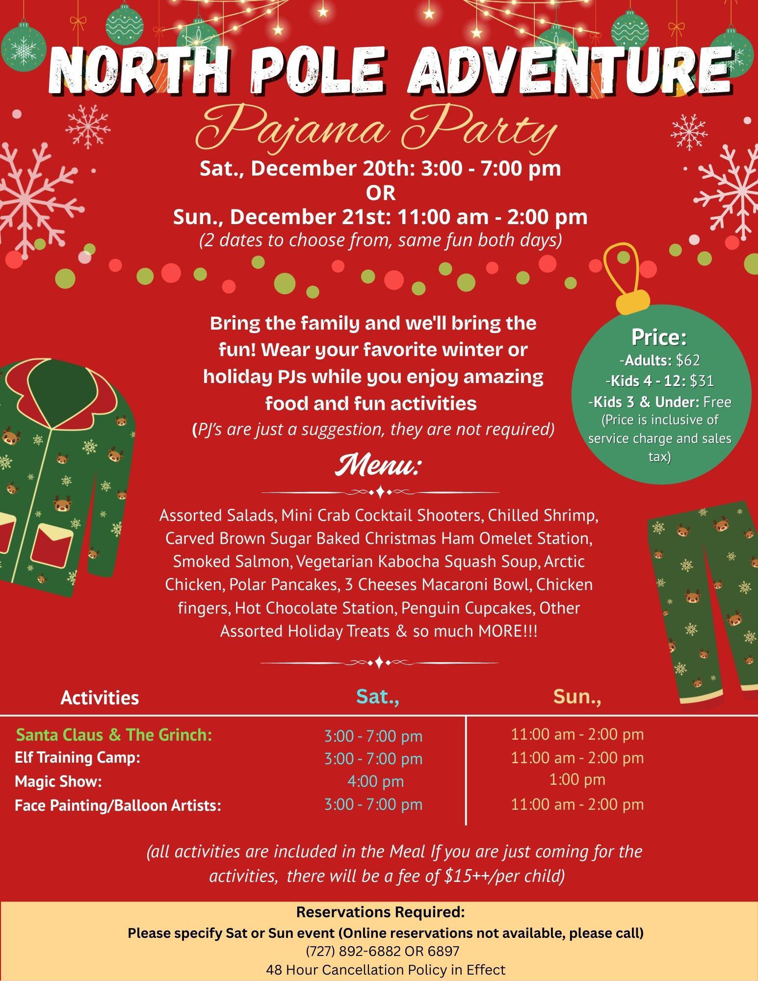 • December 20th and 21st - North Pole Adventure Pajama Party