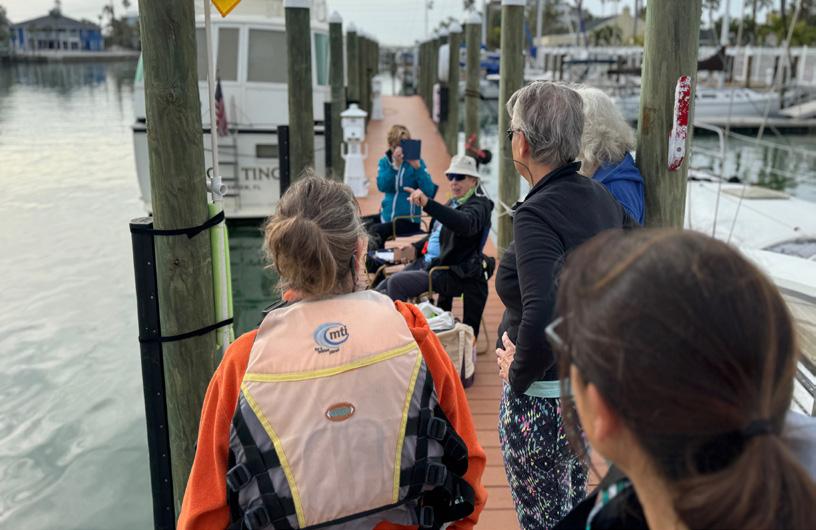 We had a great turnout for our February 1st dinner. Our speaker was Krista Park, Coordinator of Training & Operations for the Eckerd College Search & Rescue program, with an interesting and engaging presentation on Eckerd S&R operations. The only program of its kind in the country, its student members work 24 hours on, 48 hours off conducting every aspect of rescue operations throughout the Tampa Bay area. At the meeting we welcomed new members and reviewed plans for our busy upcoming cruising schedule –February cruises to Clearwater Yacht Club in two groups plus an Anchor Out weekend at Emerson Point Preserve, and in March two weekend cruise-ins to our downtown docks. We also reviewed plans for our two-week Commodore’s Cruise to the Keys in late April. Paul and Gini Berry had samples of our 2025 Commodore’s Cruise shirts on hand and are taking orders until midMarch.
