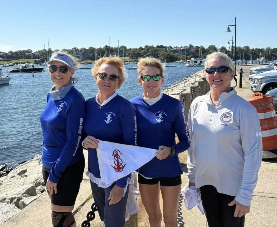 Salty Sister, Audrey Orgo , reported about her experience at the Great Grand Masters Team Match Race held at the New York Yacht Club in Newport, RI. Audrey’s Salty Sister teammates were Lori Leadbetter, Jennifer O’Neil l, and PC Susan Wallace . It was a tough race and a very tough competition. PC Char-Nel Doyle was instrumental in putting the teams together, and a total twelve SPYC members participated in the race. The event started with registration on Tuesday and then practice on Wednesday. Racing began Thursday with 20+ knot winds, gusting to 30+, due to Hurricane Erin moving up the east coast.