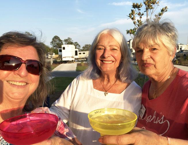 Our “Spring Fling” was held March 9th -12th at Keystone Heights RV Resort, a location in northern Florida east of Gainesville. On our first day of arrival (Thursday), we had a brief social before turning it up for our Mexican Fiesta (sans sombreros). Almost endless “hand-crafted” Margaritas and Sangrias were the ultimate ice breakers, followed by flavorful desserts and a cracklin’ fire. The weather turned chilly, what a treat. On Friday, folks ventured out on their own to discover what lay beyond. That evening, we met for dinner at the restaurant next door, Orange Blossoms, for some catching up. On Saturday, more exploring to the flea market, the Gifts and Guns store (where there’s something for everyone), and to other parts unknown. Back at the campground, we met again for another impromptu social of various snacks, followed by some chocolate martinis! Sunday, a farewell breakfast before scattering in all directions.