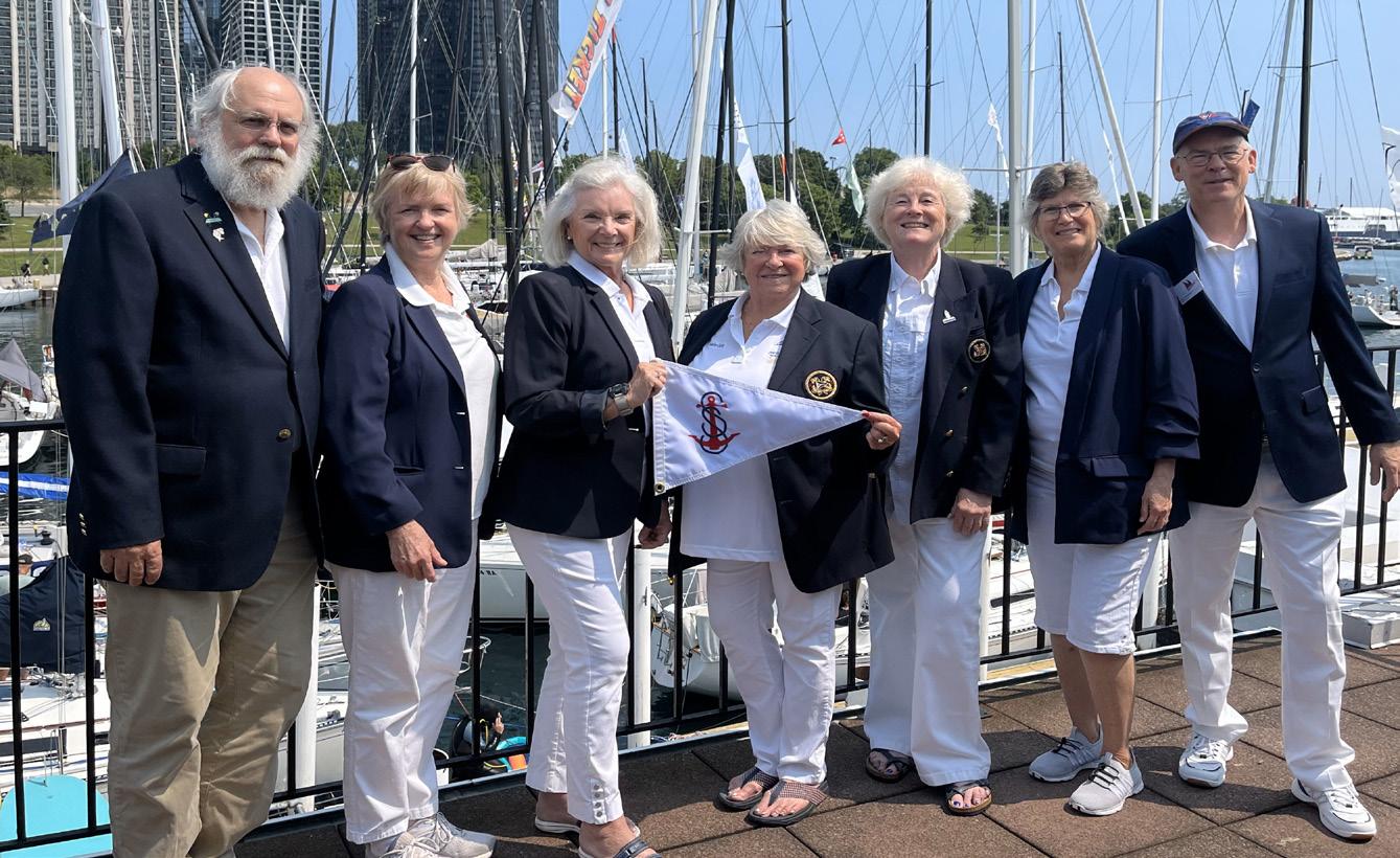 In early July, five Salty Sisters and two Briney Brothers were invited to participate in the running of the 115th Chicago to Mackinac Race. Duties included registration, boat inspections, docking, and race committee for both the Illinois starts and Michigan finishes.